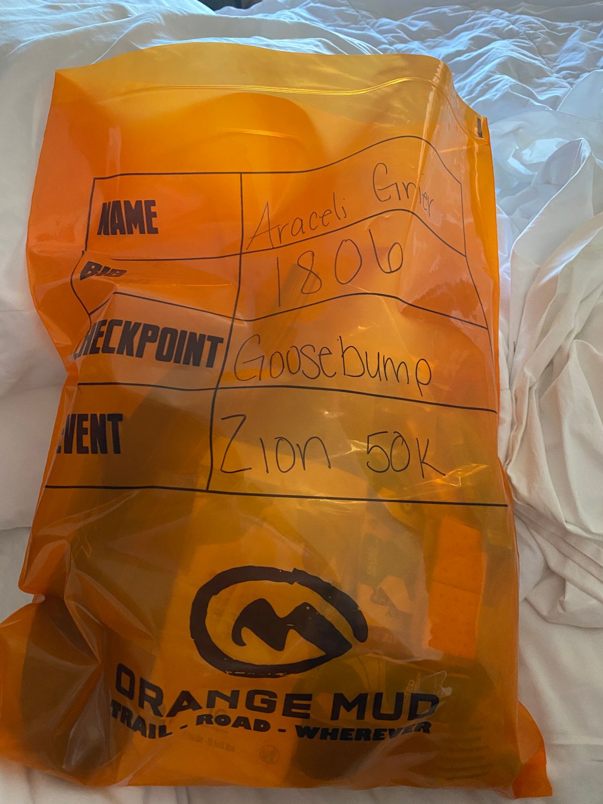 Absolutely. Each bag includes designated spaces for your name, bib number, checkpoint, and event details for easy labeling and smooth race-day organization.